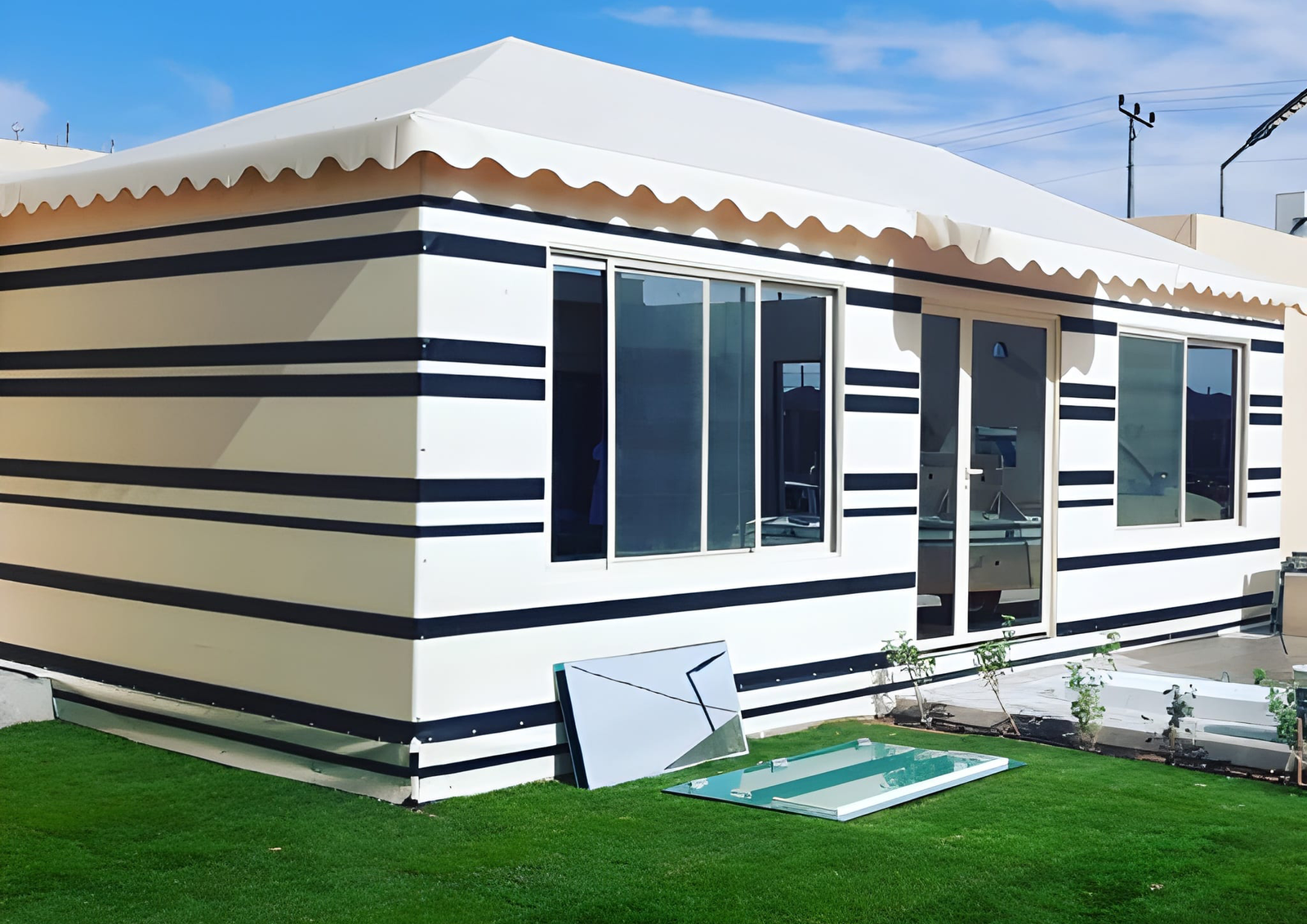 احتفِ بكرم الضيافة العربي في مجلس يجمع بين أصالة الماضي وفخامة الحاضر. تقوم مظلات وسواتر الرياض ببناء بيوت شعر ملكية بهياكل متينة وتشطيبات داخلية فاخرة من السدو الأصيل والإضاءة المخفية، لنصمم لك مجلساً يليق باستقبال ضيوفك ويعكس تراثنا العريق.