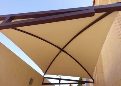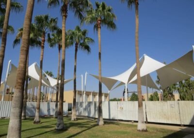 للمشاريع المعمارية التي تتجاوز المألوف، نقدم في مظلات وسواتر الرياض حلول الشد الإنشائي التي تمثل قمة الهندسة والجمال. باستخدام أغشية (PVC) و (PTFE) خفيفة الوزن وشديدة المتانة، نصمم هياكل أيقونية تغطي مساحات شاسعة دون الحاجة لأعمدة، مما يخلق معلماً بصرياً فريداً يوفر الظل ويسمح بمرور الضوء الطبيعي بأناقة.