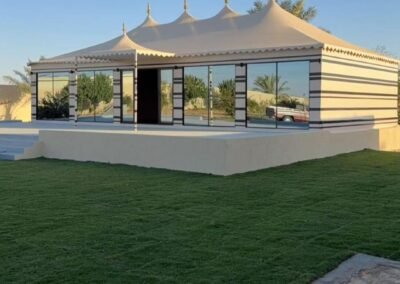 احتفِ بكرم الضيافة العربي في مجلس يجمع بين أصالة الماضي وفخامة الحاضر. تقوم مظلات وسواتر الرياض ببناء بيوت شعر ملكية بهياكل متينة وتشطيبات داخلية فاخرة من السدو الأصيل والإضاءة المخفية، لنصمم لك مجلساً يليق باستقبال ضيوفك ويعكس تراثنا العريق.