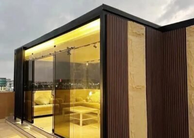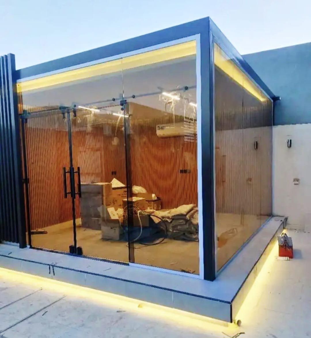 استمتع بدفء الشتاء وجمال الطبيعة في آن واحد. تتخصص مظلات وسواتر الرياض في بناء ملاحق زجاجية مغلقة بالكامل باستخدام زجاج مزدوج (دبل جلاس) عازل للحرارة والصوت. نصمم لك مساحة أنيقة ودافئة تطل على حديقتك، لتكون ملتقى العائلة المفضل في الأجواء الباردة.