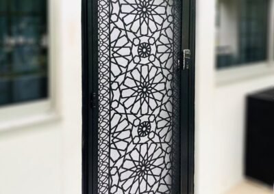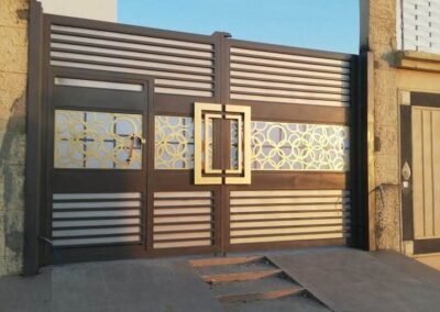 مدخل منزلك هو الانطباع الأول. لذلك، تبدع مظلات وسواتر الرياض في تصميم وتصنيع أبواب حديد قص ليزر بتصاميم فريدة تجمع بين صلابة الفولاذ ورقة الفن. نقدم لك بوابات ليست مجرد وسيلة حماية، بل هي تحفة فنية ترحب بضيوفك وتضيف قيمة لمنزلك. لتصميم بوابتك الخاصة، اتصل بنا على 0532198129.
