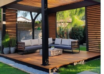 حوّل حديقتك أو سطح منزلك إلى مساحتك المفضلة مع برجولاتنا العصرية. تبدع مظلات وسواتر الرياض في تصميم وتنفيذ برجولات من الحديد والخشب لتكون مركز الجلسات العائلية ومنطقة استقبال الضيوف في الهواء الطلق. يمكننا تصميمها لتناسب أي مساحة. ابدأ في تصميم جلستك المثالية اليوم، اتصل بنا على 0532198129.